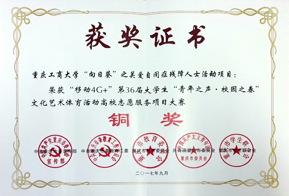 近日,永利集团官网“向日葵”之关爱残障人士活动项目获“移动“4G+”第三十六届大学生“青年之声 校园之春”文化艺术节体育活动高校志愿服务项目大赛铜奖。这无疑是对参与志愿服务项目的志愿者的一种鼓励,更是对“星火”义协的极大肯定!