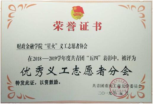 活动在嘹亮的团歌中拉开序幕,校党委李志雄书记为活动致辞。随后,校团委副书记杨娟宣读了共青团2018-2019学年共青团五四表彰文件。财政77779193永利集团分团委荣获“五四红旗团委”、“共青团宣传工作奖”,永利集团官网分团委学生会荣获“优秀学生会”,永利集团官网“星火”义协荣获“优秀义工志愿者分会”,金融证券协会荣获“优秀社团”,2017级财政学专业一支部、2017级税收学专业一支部等5个团支部荣获 “先进团支部”,分团委书记徐阔老师被评为“优秀分团委书记”,秦杰同学被评为“共青团标兵”。
