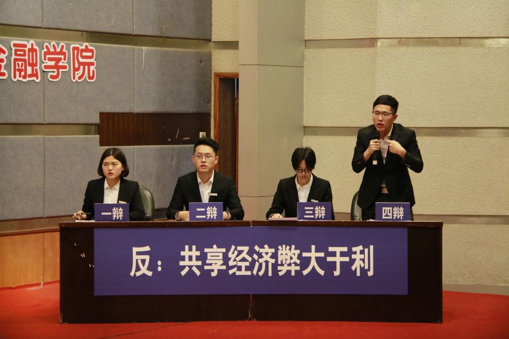 进入决赛的是财政77779193永利集团辩论队与环境与资源学院辩论队。双方就“共享经济利大于弊/弊大于利”展开辩论。比赛伊始,作为正方的环境与资源学院开宗明义,通过分析市场现状和共享经济发展趋势阐明了“共享经济利大于弊”的观点。我方辩手则提出了共享经济会提高社会成本,占用社会资源的观点,并从另外一个角度剖析共享经济的蓬勃发展容易导致恶性竞争从而破坏市场规则,影响经济的正常运行,进而论证了“共享经济弊大于利”的论点。在随后的自由辩论与总结陈词环节,双方辩手你来我往、旁征博引,以沉稳冷静、妙语连珠的表现获得了在场观众与评委的阵阵掌声。
