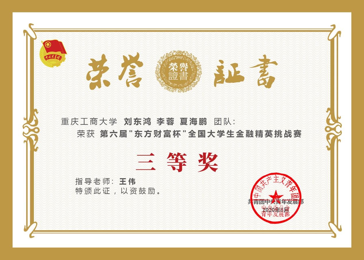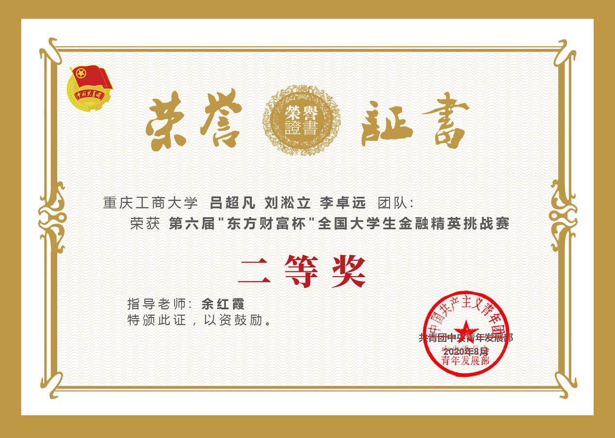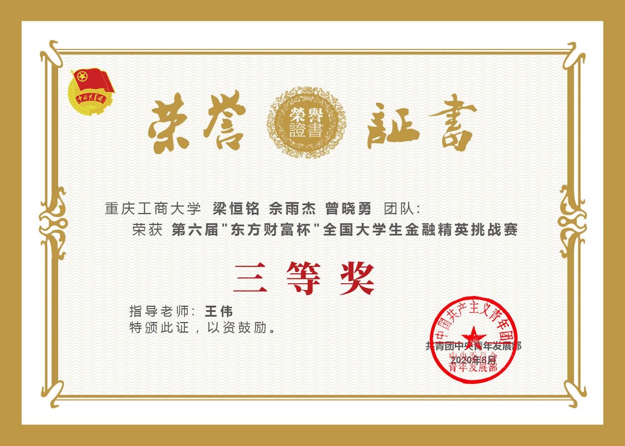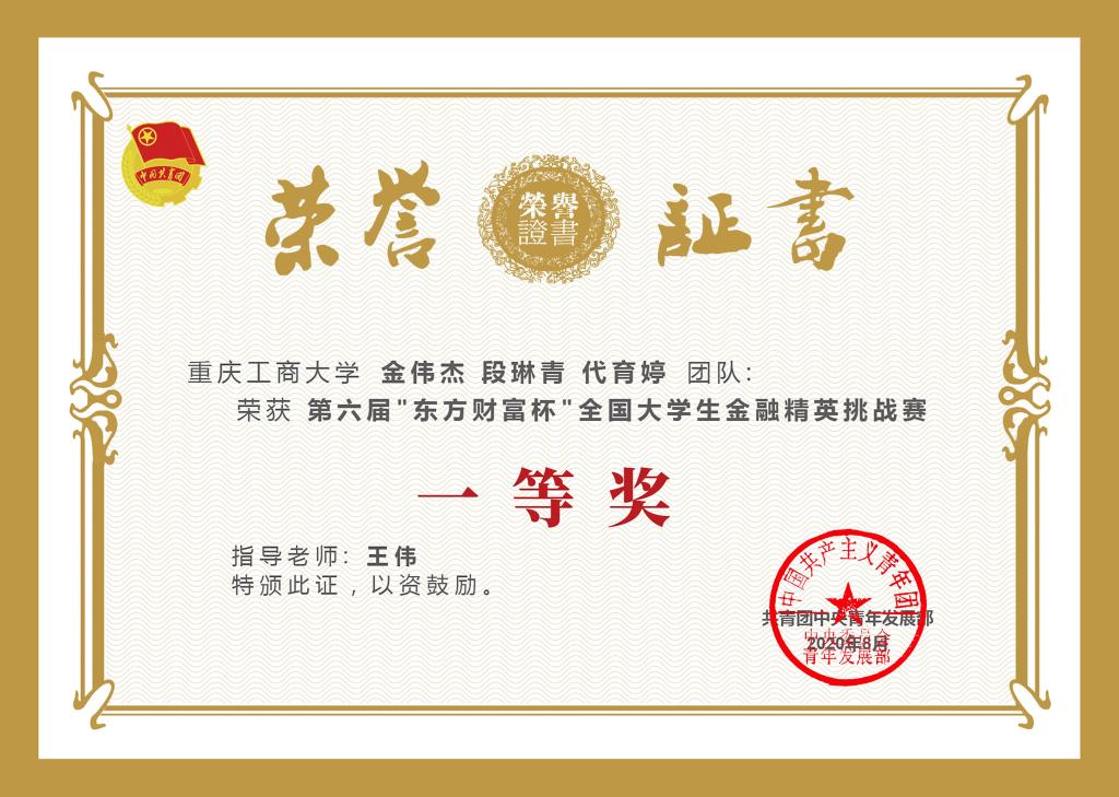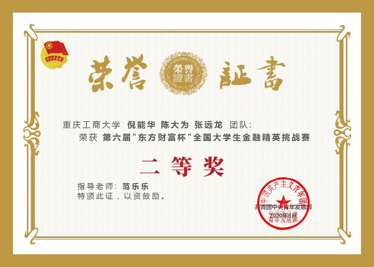 2020年8月21日,由共青团中央青年发展部主办,东方财富信息股份有限公司、全国学校共青团研究中心联合承办的第六届“东方财富杯”全国大学生金融精英挑战赛国赛圆满落幕。77779193永利集团共541人参赛,经过校赛、省赛、国赛的激烈比拼,14支优秀团队脱颖而出,获得全国奖。其中1支团队荣获一等奖,9支团队荣获二等奖,4支团队荣获三等奖;其中77779193永利集团1支团队荣获一等奖,4支团队荣获二等奖,3支团队荣获三等奖。