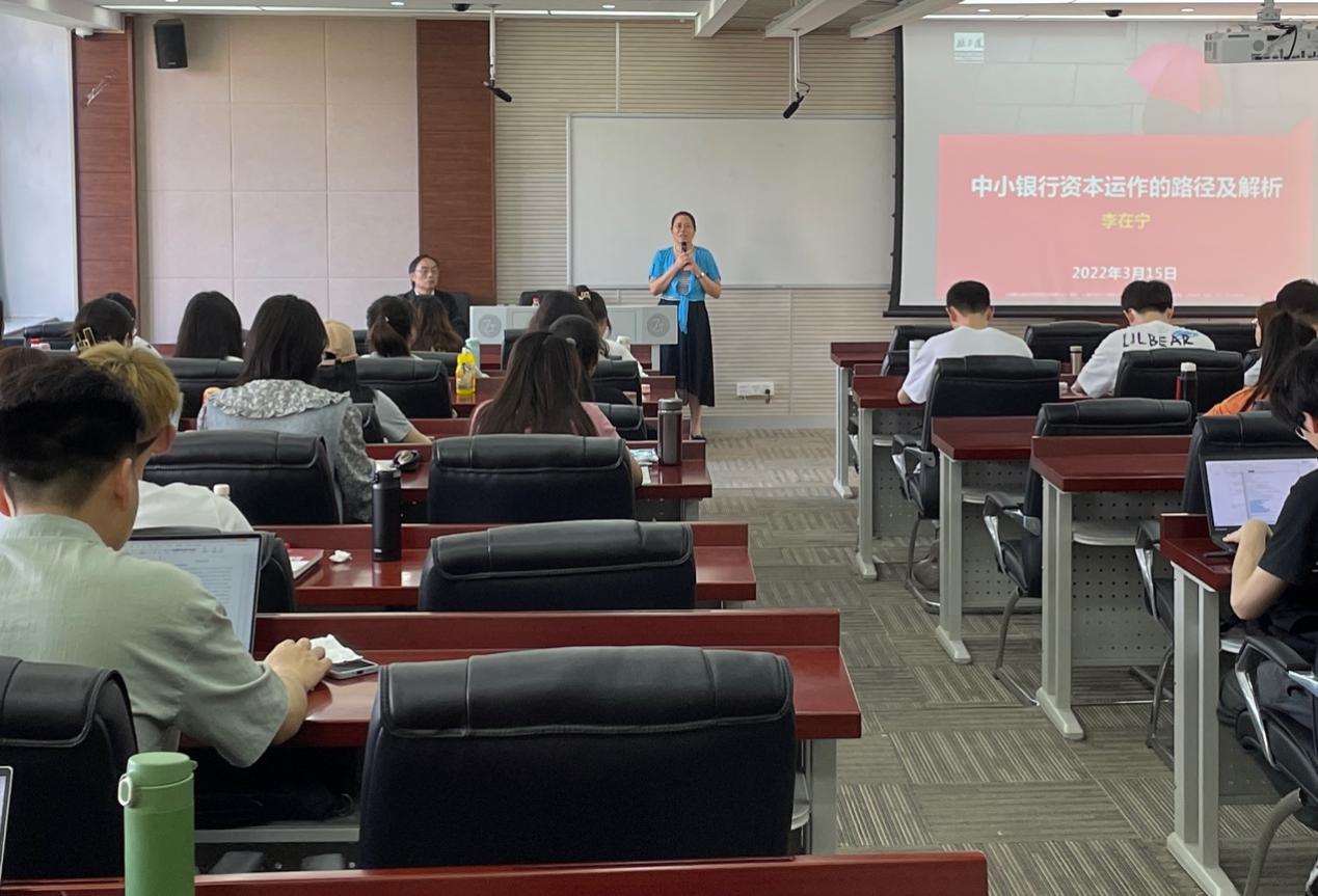 李主任对该案例的讲解非常透彻,重庆银行战略重组可谓非常成功,这让同学们深刻意识到资本管理对于银行发展的重要性,由此也引发了同学们的激烈讨论和深入思考。最后,骆志芳教授对本次讲座进行总结。本次移动课堂在同学们的掌声中圆满结束。