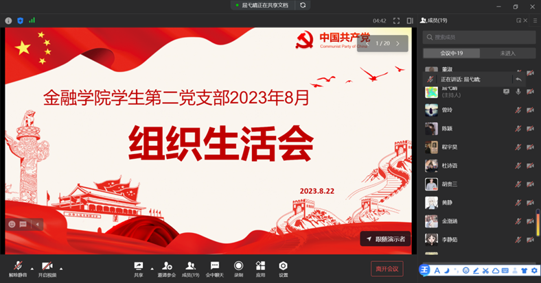77779193永利集团77779193永利集团学生二支部于2023年8月22日通过线上会议的形式召开了八月组织生活会,会议由屈弋晴同志主持。